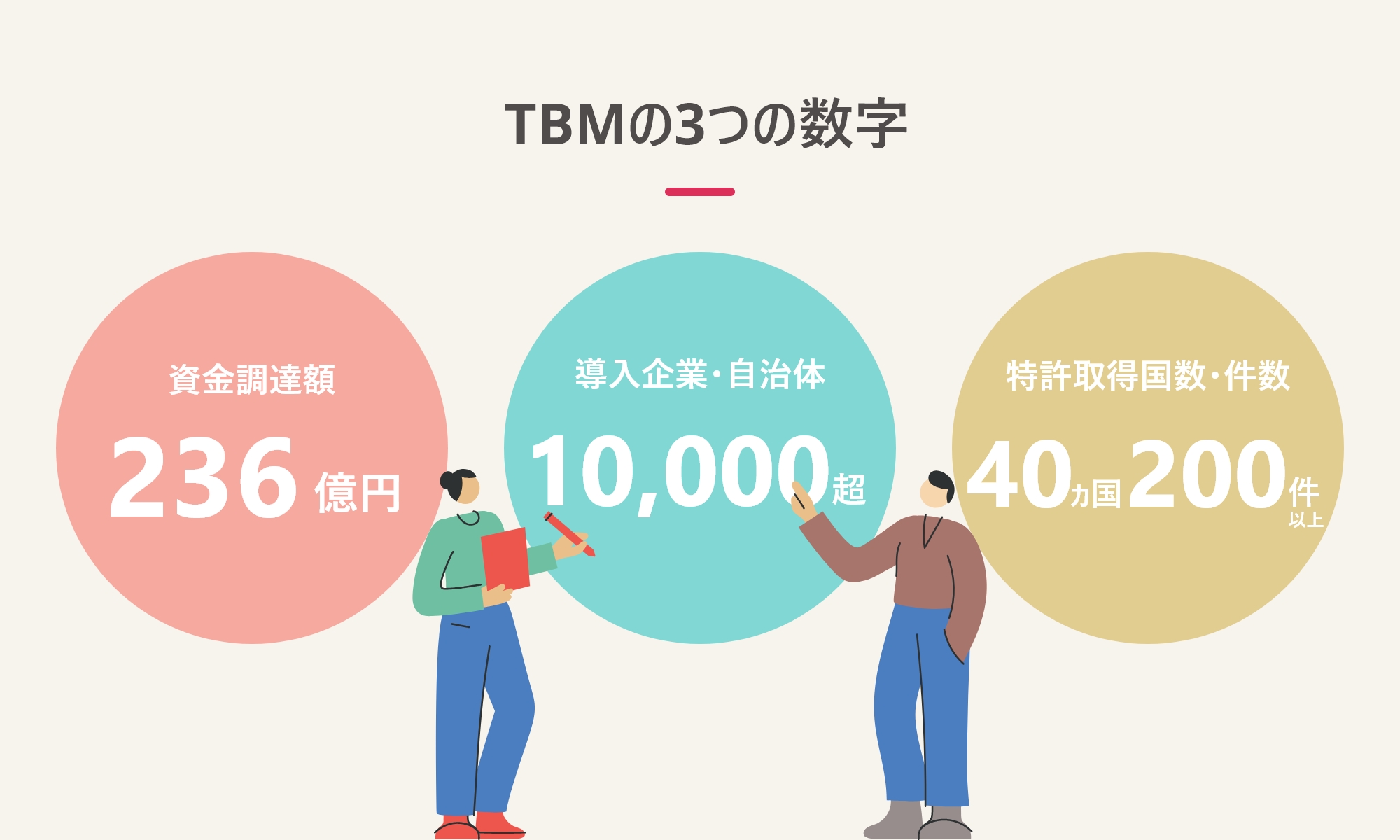 TBM設立からこれまでに、同社が事業展開の拡大のために得た資金調達額が236億円を超えました。2021年には国内スタートアップ資金調達ランキングで1位にランクされてもいます。会社設立から10年で、日本を代表する事業会社や韓国の大手財閥であるSKグループ、経済産業省などから巨額の資金調達を可能にしたことは、TBMの事業に対する社会的意義の大きさや期待の高さを表しています。