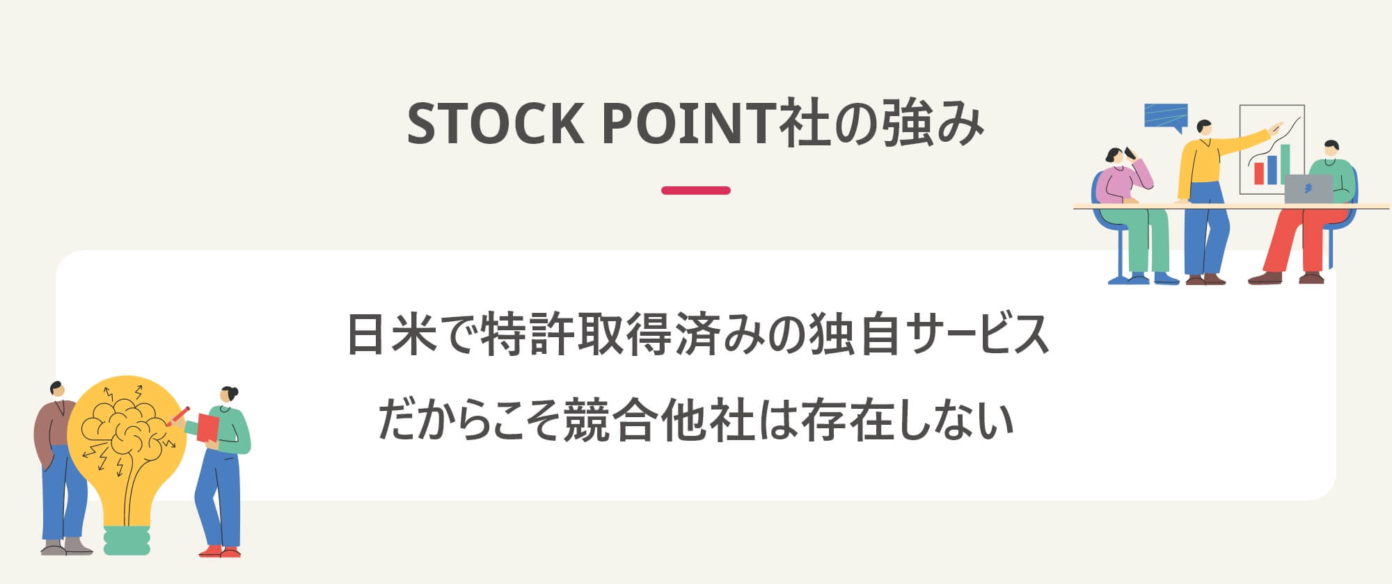 個別株式の株価に連動してポイントを運用する当社のシステムは、日本と米国で特許を取得済みで、他社が無断で真似することはできません。その意味では競合企業はありません。