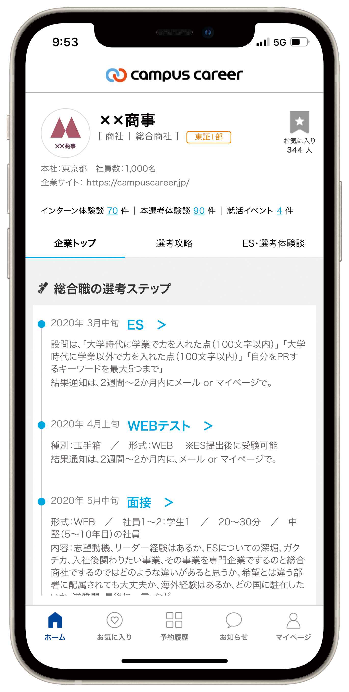Q.では次は選考対策について教えてください。キャンパスキャリアで掲載している選考対策情報については、学生の第一志望となりやすい、人気ランキング上位の企業の情報が非常に多いです。また情報そのものについては、過去にその企業の選考を経験した先輩たちのリアルな声を届けています。3,000名以上の学生が自身の選考体験談を投稿してくれ、通過をしたESや面接時に注意した点、当日の雰囲気や感想を掲載しています。面接については選考を通らなかったときの振り返りや反省も情報として提供しています。また、学生が対策をしやすいよう、やるべき準備や対策など寄せられた情報は企業ごと「これを読めば○○社の対策ができる」というように選考突破のポイントをわかりやすくまとめています。