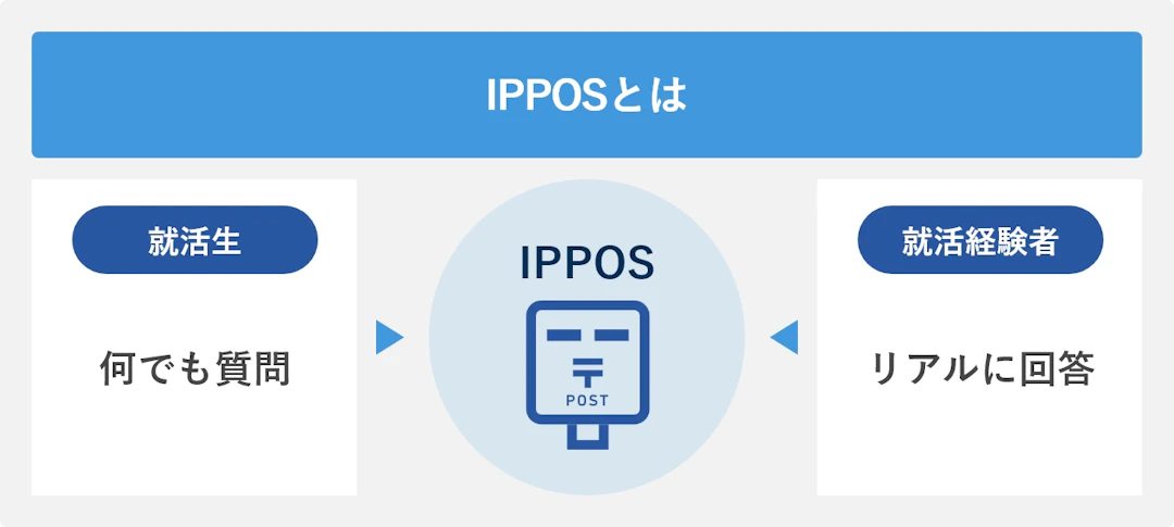 Q.どのような就活生にIPPOSを利用してほしいと考えていますか。これから就活を頑張ろうと思っている人、いま就活を頑張っている人に使ってもらいたいですね。学生たちは毎年同じような悩みを抱え、みなが毎年ゼロからスタートします。それは非効率だし不健全ではありませんか。就活の経験者が、これから就活する人のために情報を提供し手を差し伸べれば、新たな就活生は一歩踏み出す勇気を得られ、自分が納得できる就職先に内定できるでしょう。 就活に迷っている人は一歩踏み出して質問をしてみてほしいですが、自分が就活で誰かに助けられた経験のある人にも、ぜひ回答者として自分と同じ境遇の学生を導いてほしいです。