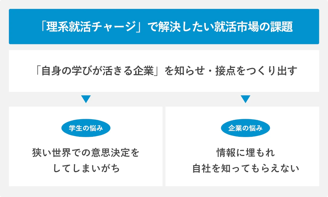 学生と企業、双方の悩みを同時に解決できるのがこの理系就活チャージ!