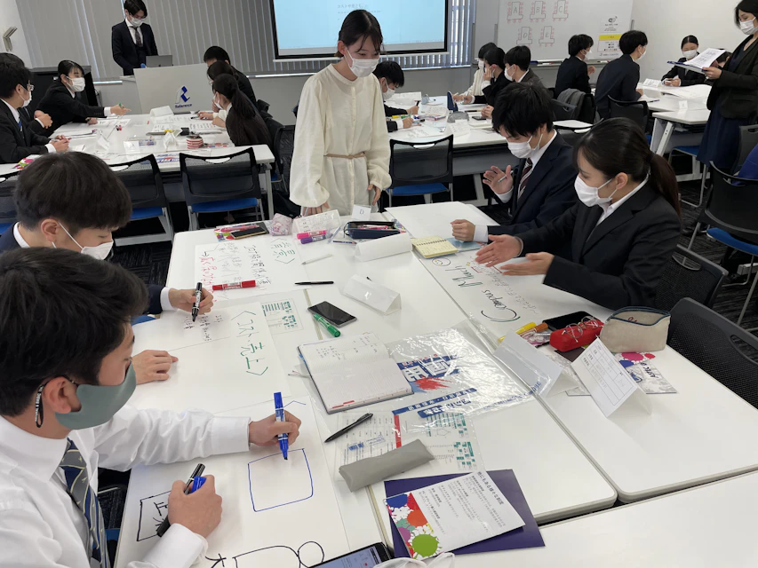 難しいですよね(笑)。ですから、インターネット検索もOKにしています。学生同士協力し合って案を考えてもらい、その様子を企業が評価していくという形ですね。
